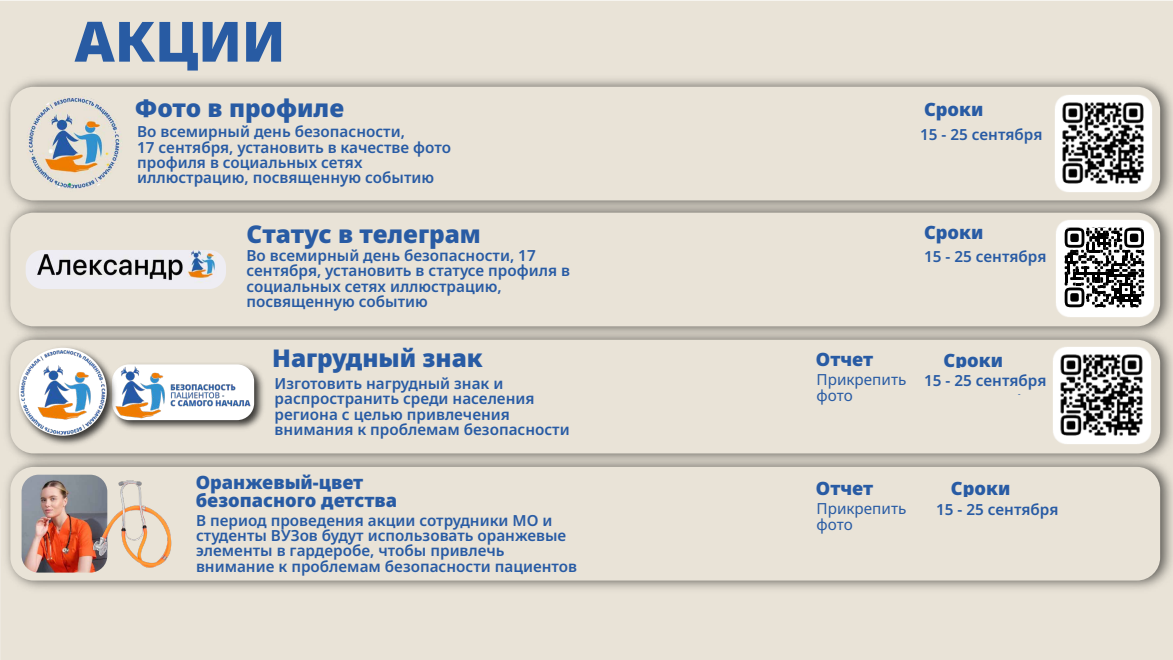 Узнать больше о Всемирном дне безопасности пациентов можно, используя QR-коды.