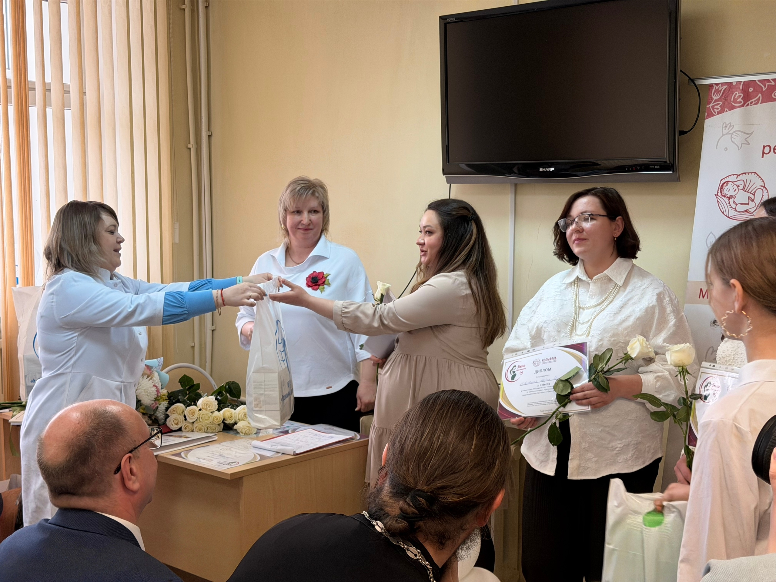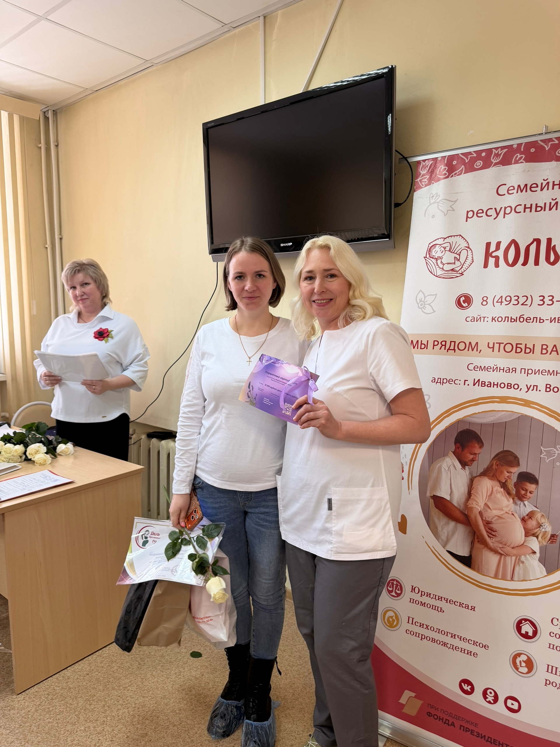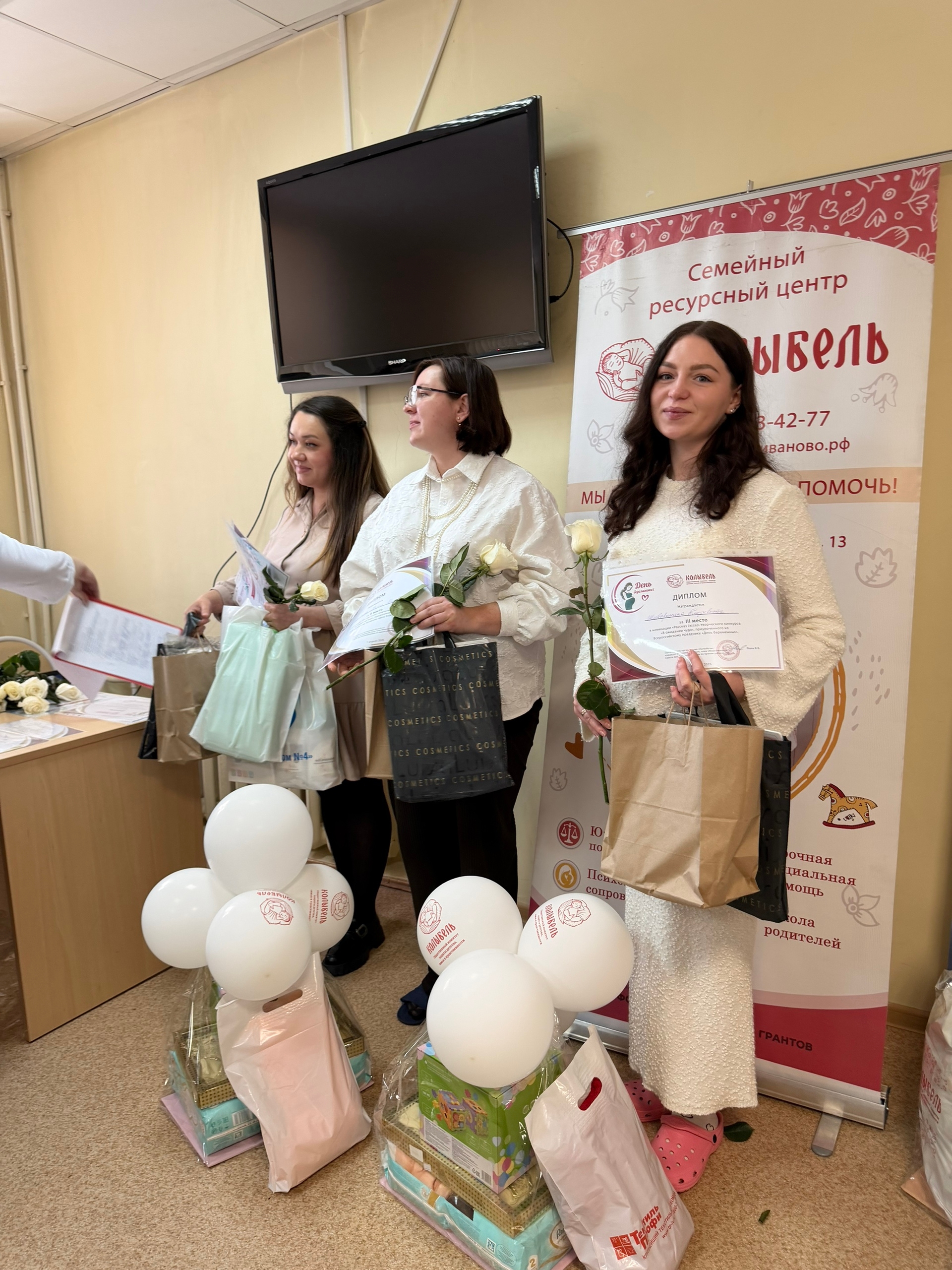в ходе мероприятия провели торжественное награждение участниц и победительниц конкурса «В ожидании чуда» девушек ждали полезные, сертификаты и сюрпризы, такие как: кроватка для малыша, сертификат на видео съемку родов, послеродовые наборы и многое другое